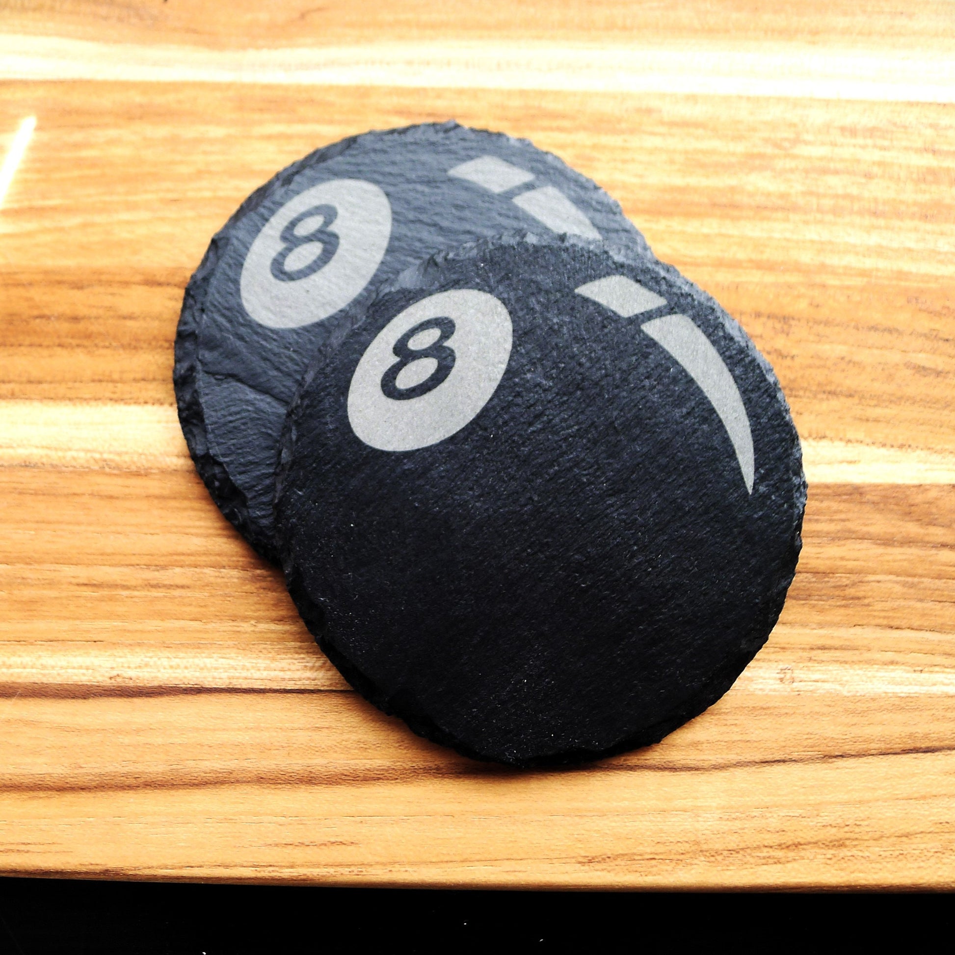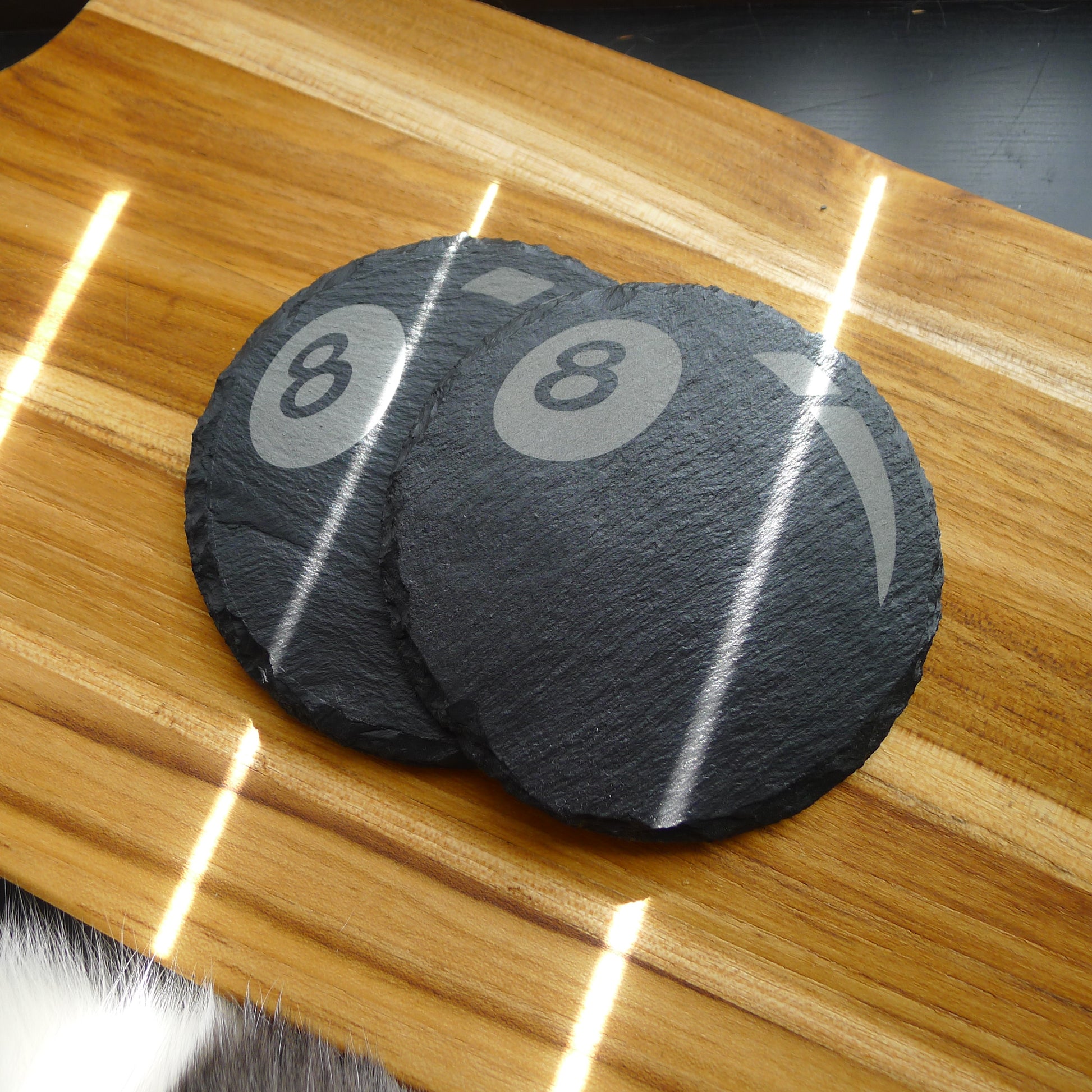 Laser Engraved 8 Ball Round Slate Coaster Set