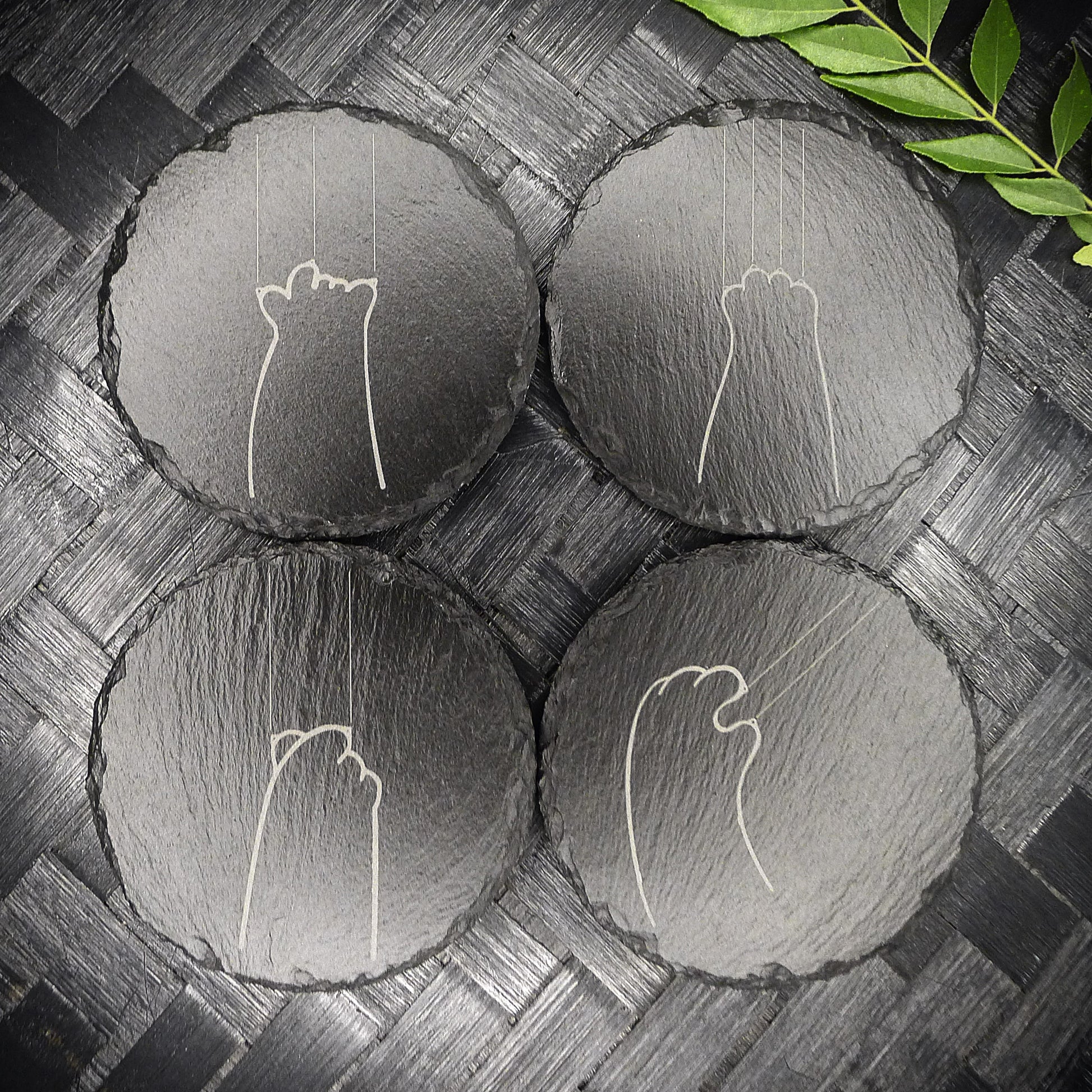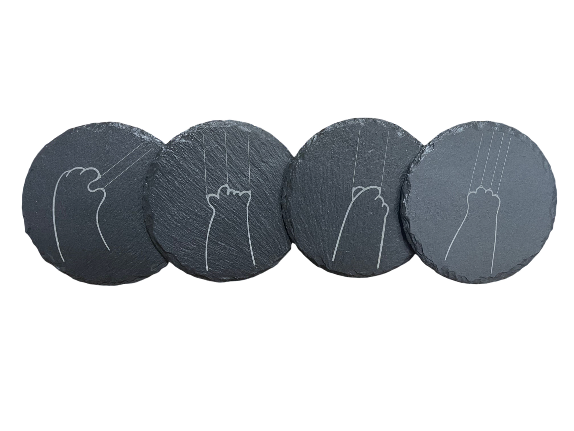 Cute Cat Claw Slate Coaster Set - Cute Engraved Minimalist Cat Paw Design
