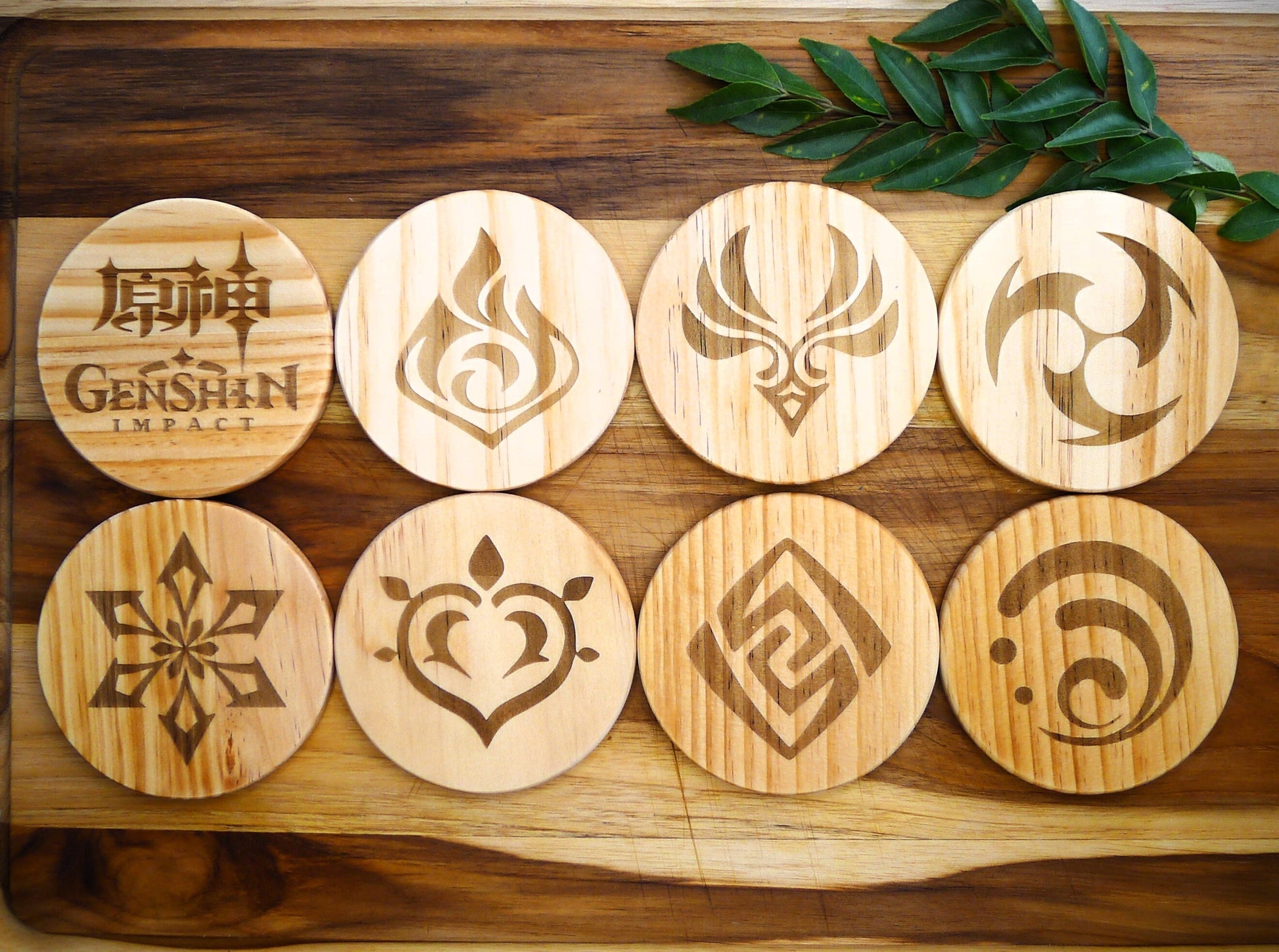 Features: Made from high-quality wood coasters, each coaster is carefully engraved with a symbol representing one of the game's powerful Archons. Perfect for fans of the game, these coasters add a touch of style and fandom to your space while protecting your surfaces. Ideal for drinks and a great gift for any Genshin Impact Fan!
