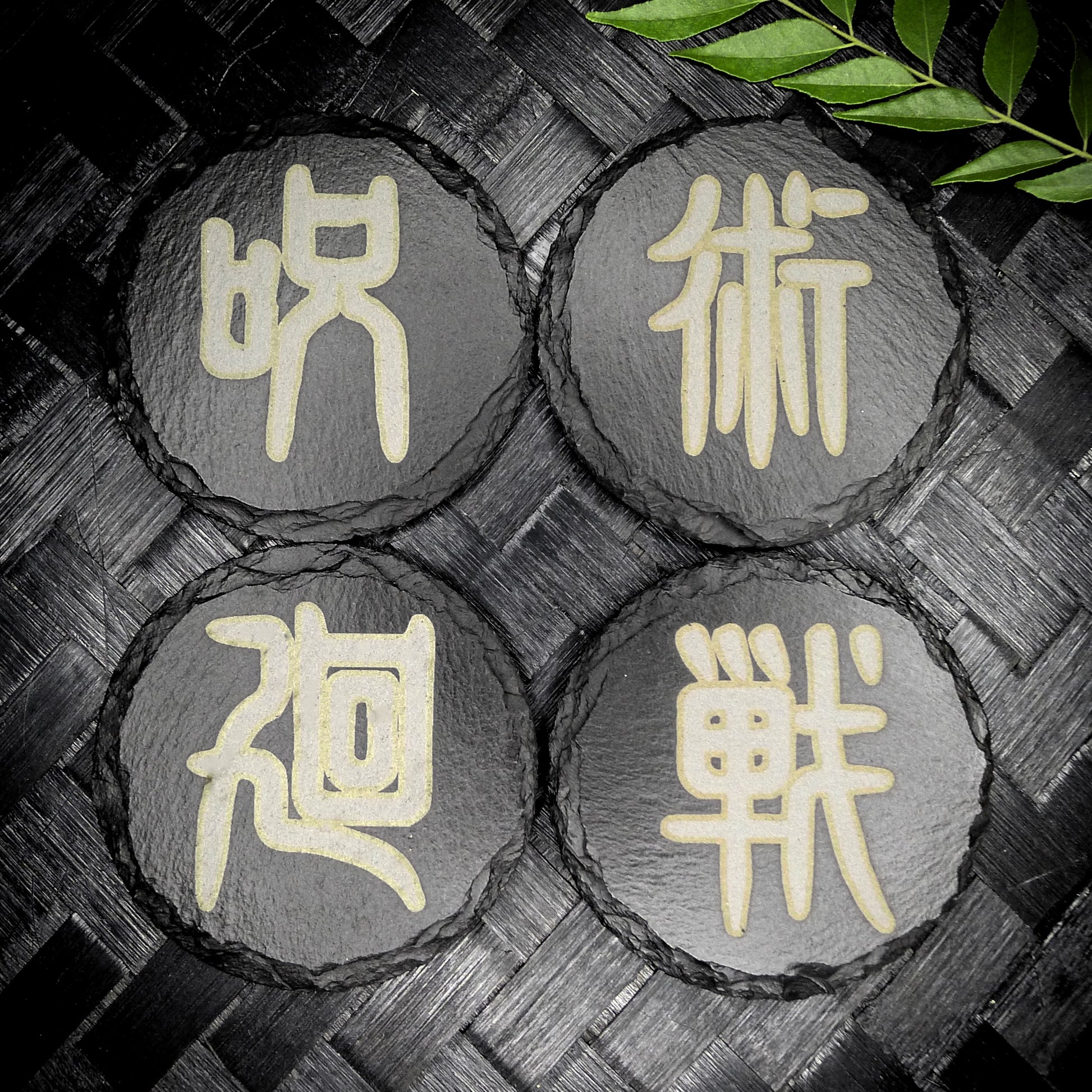 RARE! Jujutsu Kaisen-Inspired Slate Coaster Set – Handcrafted Two-Tone Laser Engraved Kanji Coasters