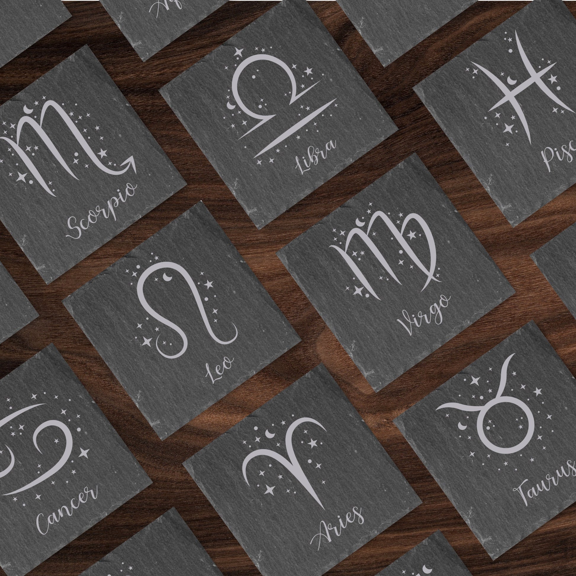 Zodiac Slate Coasters Custom Engraved Astrology Drink Coasters