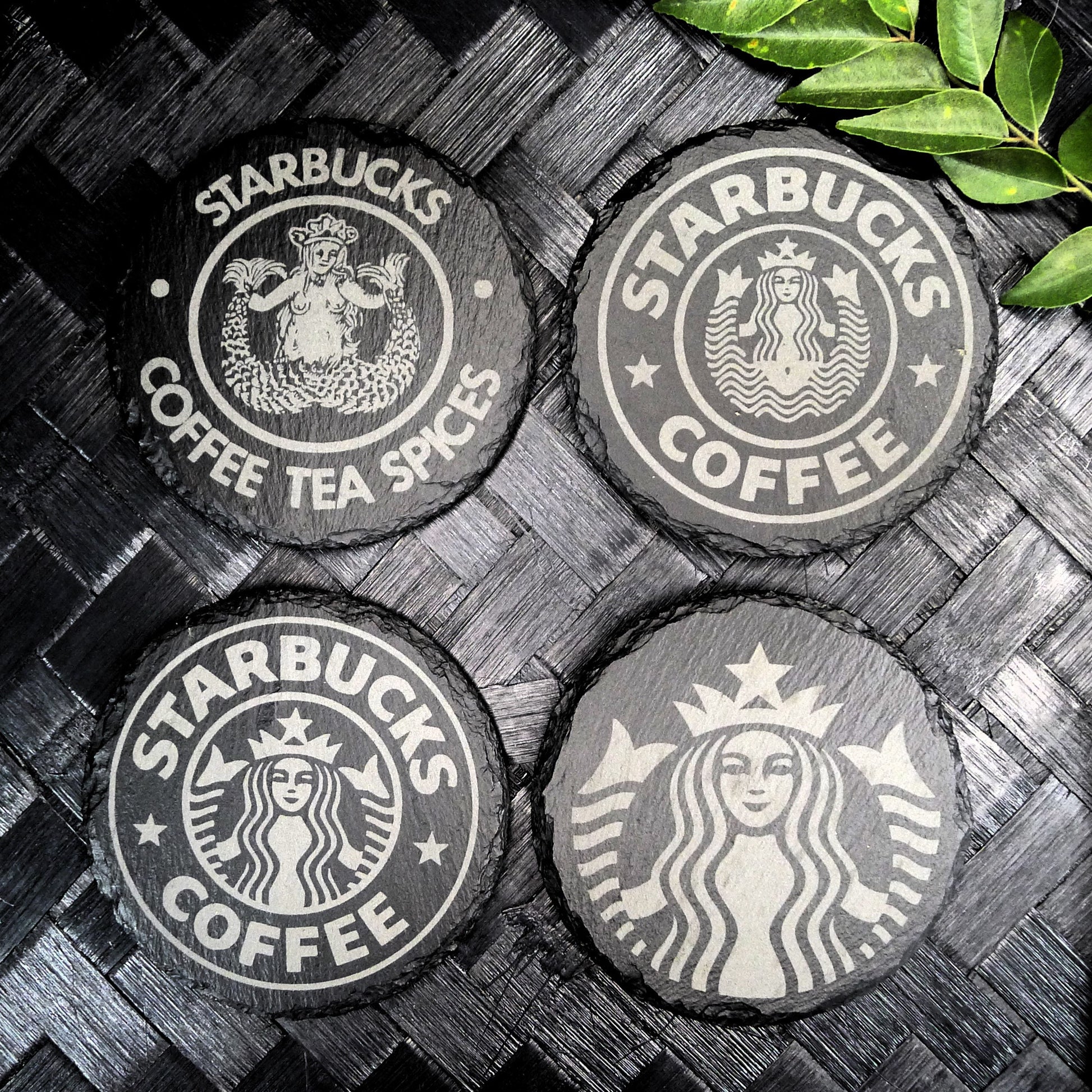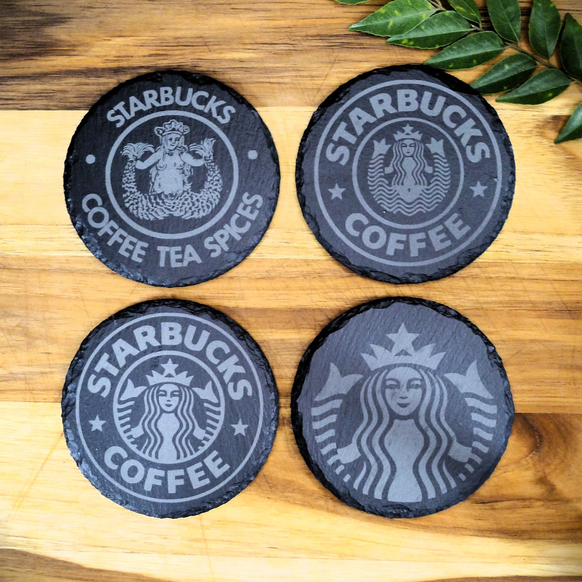 Features: Enhance your drinkware with our made-to-order, premium 4" x 4" round slate coasters, featuring the iconic Starbucks Siren designs from 1971, 1987, 1992, and 2011. Expertly crafted in the USA, each coaster is finished with a protective coating for lasting durability and style.
